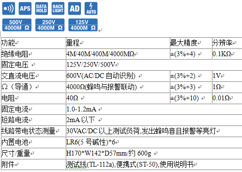■ 自动放电功能,测试完毕任何存储于线路上的电量将被自动释放
