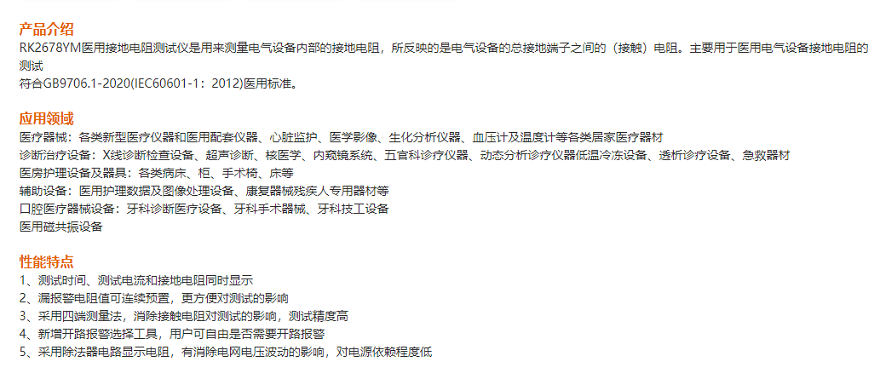 本网页所展示的有关【美瑞克 RK2678YM医用接地电阻测试仪】的信息/图片/参数等由的会员【美瑞克-深圳柏莱科技有限公司 】提供,由柏莱仪器网-专业销售仪器仪表服务商-深圳柏莱科技有限公司会员【美瑞克-深圳柏莱科技有限公司 】自行对信息/图片/参数等的真实性、准确性和合法性负责,本平台(本网站)仅提供展示服务,请谨慎交易,因交易而产生的法律关系及法律纠纷由您自行协商解决,本平台(本网站)对此不承担任何责任。您在本网页可以浏览【美瑞克 RK2678YM医用接地电阻测试仪】有关的信息/图片/价格等及提供 【美瑞克 RK2678YM医用接地电阻测试仪】的商家公司简介、联系方式等信息。