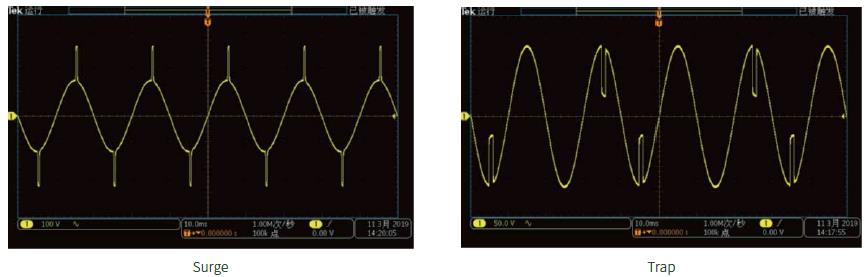 IT-M7700系列提供突波/陷波的模拟功能,用户可以根据需求在输出正弦波的基础上加上突波/陷波来模拟电路系统中电压的异常波动,从而测试待测物在此种环境下的使用情况。