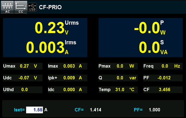 ♦ 可量测Vrms/Vpk/Vdc/Irms/Ipk/Idc/W/VA/VAR/CF/PF/FREQ