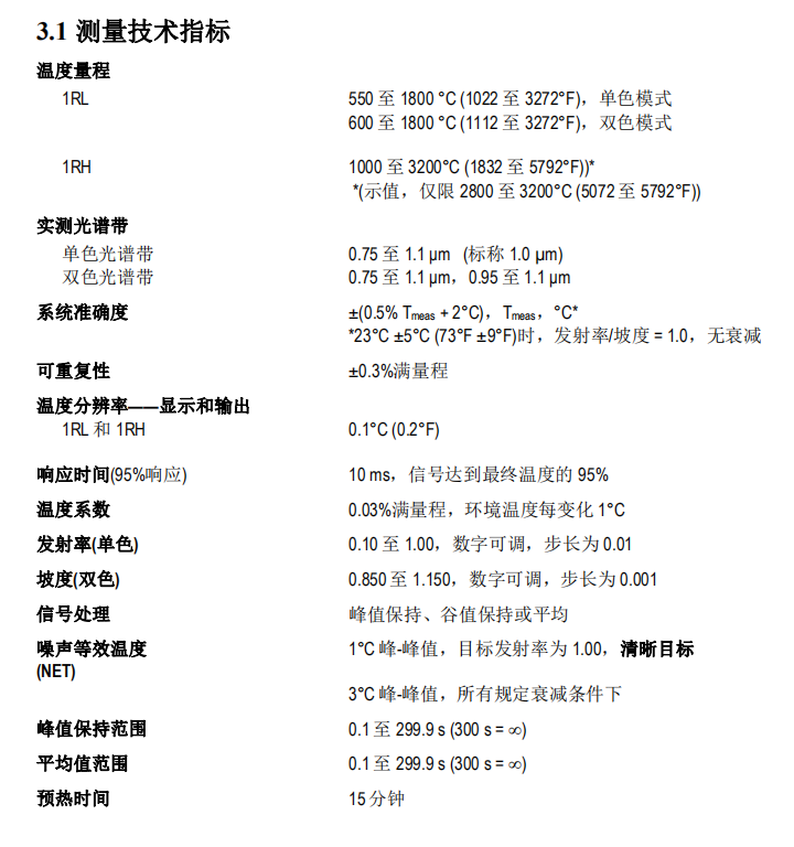 宽广的测温范围:50 to 3200 °C (122 to 5792 °F)