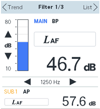 SUB1/ SUB2 / SUB3 : SLM模式中的各1个数据(SUB1的频率特性为A特性)