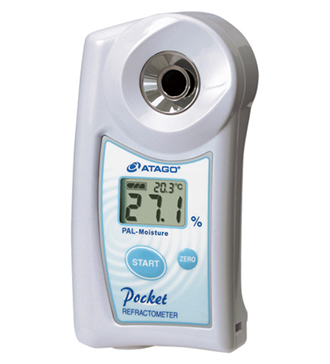 ATAGO(爱拓)数显水分折射仪/果脯水分折射仪/数显干果水分检测仪 PAL-Moisture,能快速地测定物质所含的水分,通过使用下面的公式计算:水分含量= 100–Brix。 白利糖度是100克蔗糖溶液为重量百分比蔗糖的重量。当其他的溶解固体的溶液中存在,Brix值的转换可以应用。