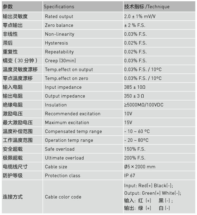 平行(剪切)梁结构,波纹管密封设计。合金钢,不锈钢制传感器。