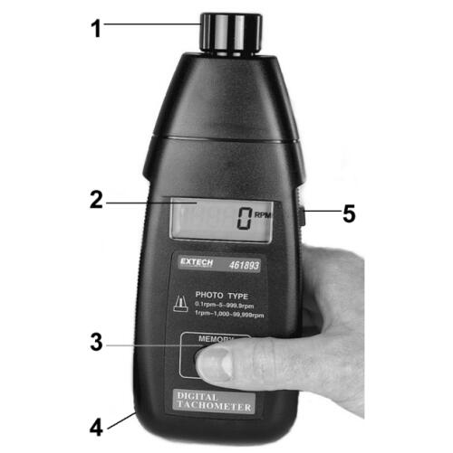 使用461893,您可以通过将放置在要测量对象上的反射带指向整体光束(6目标距离)来进行旋转对象的非接触式RPM测量(5至99,999 RPM)。存储按钮保持最后一次读取并调用最小/最大读数显示。配备4节AA电池,23英寸(0.6米)反光带,手提箱和用户手册。