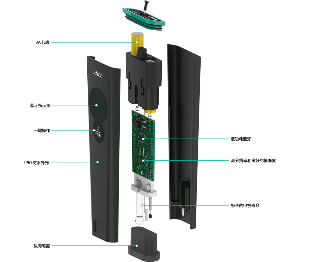 蓝牙版的pH、温度测试笔设计理念来自于用户每天测量时的良好体验,该测试笔配置JENCO公司免费提供的APP(支持安卓和苹果系统)能以最简单的方法得到高精度的pH和温度的测试。升级专业版APP(支持安卓和苹果系统),更能得到测量时的精准地理位置与数据历史记录。