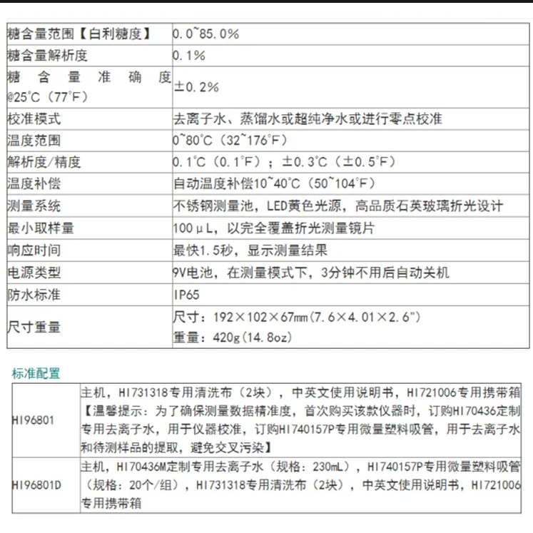 本网页所展示的有关【HI96801高精度微电脑【蔗糖】白利糖度 折光分析仪 哈纳HANNA】的信息/图片/参数等由的会员【HANNA哈纳 】提供,由柏莱仪器网-专业销售仪器仪表服务商-深圳柏莱科技有限公司会员【HANNA哈纳 】自行对信息/图片/参数等的真实性、准确性和合法性负责,本平台(本网站)仅提供展示服务,请谨慎交易,因交易而产生的法律关系及法律纠纷由您自行协商解决,本平台(本网站)对此不承担任何责任。您在本网页可以浏览【HI96801高精度微电脑【蔗糖】白利糖度 折光分析仪 哈纳HANNA】有关的信息/图片/价格等及提供 【HI96801高精度微电脑【蔗糖】白利糖度 折光分析仪 哈纳HANNA】的商家公司简介、联系方式等信息。