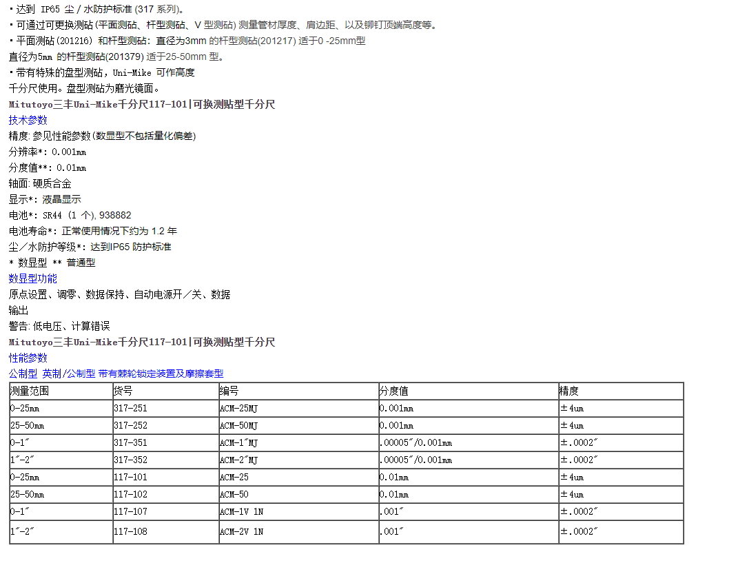 本网页所展示的有关【三丰 Uni-Mike117-101千分尺|可换测贴型千分尺】的信息/图片/参数等由的会员【日本三丰mitutoyo-深圳柏莱科技有限公司 】提供,由柏莱仪器网-专业销售仪器仪表服务商-深圳柏莱科技有限公司会员【日本三丰mitutoyo-深圳柏莱科技有限公司 】自行对信息/图片/参数等的真实性、准确性和合法性负责,本平台(本网站)仅提供展示服务,请谨慎交易,因交易而产生的法律关系及法律纠纷由您自行协商解决,本平台(本网站)对此不承担任何责任。您在本网页可以浏览【三丰 Uni-Mike117-101千分尺|可换测贴型千分尺】有关的信息/图片/价格等及提供 【三丰 Uni-Mike117-101千分尺|可换测贴型千分尺】的商家公司简介、联系方式等信息。
