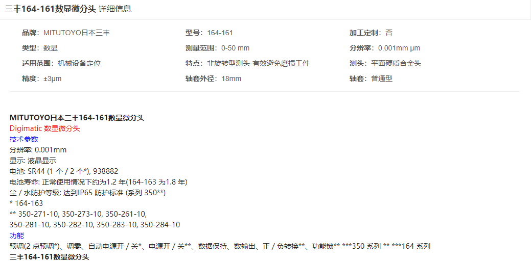 本网页所展示的有关【三丰 164-161数显微分头】的信息/图片/参数等由的会员【日本三丰mitutoyo-深圳柏莱科技有限公司 】提供,由柏莱仪器网-专业销售仪器仪表服务商-深圳柏莱科技有限公司会员【日本三丰mitutoyo-深圳柏莱科技有限公司 】自行对信息/图片/参数等的真实性、准确性和合法性负责,本平台(本网站)仅提供展示服务,请谨慎交易,因交易而产生的法律关系及法律纠纷由您自行协商解决,本平台(本网站)对此不承担任何责任。您在本网页可以浏览【三丰 164-161数显微分头】有关的信息/图片/价格等及提供 【三丰 164-161数显微分头】的商家公司简介、联系方式等信息。