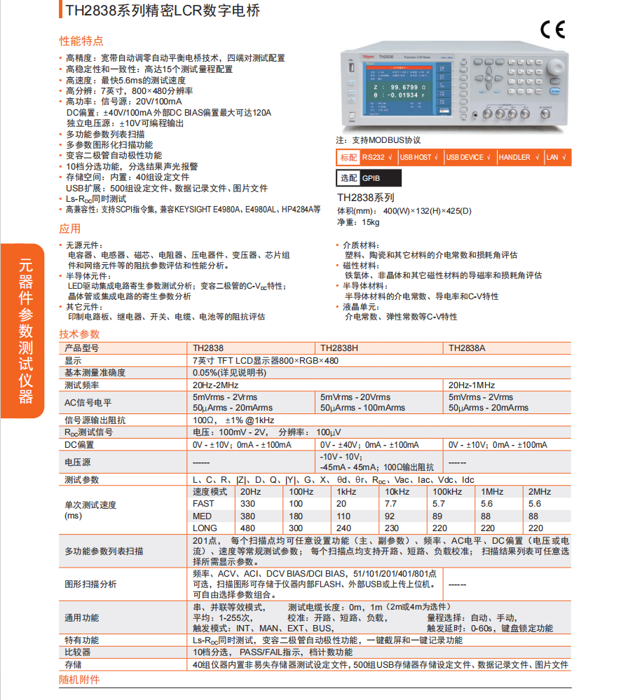 本网页所展示的有关【TH2838系列精密LCR数字电桥】的信息/图片/参数等由的会员【同惠电子 -深圳柏莱科技有限公司 】提供,由柏莱仪器网-专业销售仪器仪表服务商-深圳柏莱科技有限公司会员【同惠电子 -深圳柏莱科技有限公司 】自行对信息/图片/参数等的真实性、准确性和合法性负责,本平台(本网站)仅提供展示服务,请谨慎交易,因交易而产生的法律关系及法律纠纷由您自行协商解决,本平台(本网站)对此不承担任何责任。您在本网页可以浏览【TH2838系列精密LCR数字电桥】有关的信息/图片/价格等及提供 【TH2838系列精密LCR数字电桥】的商家公司简介、联系方式等信息。