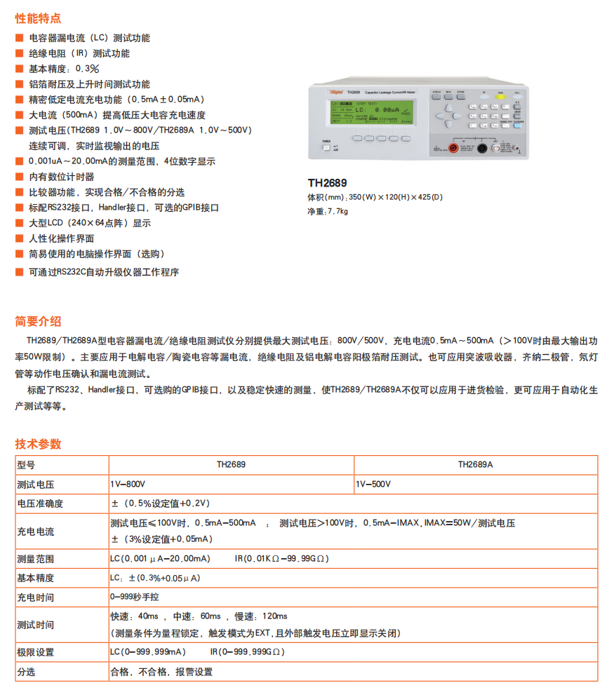 本网页所展示的有关【TH2689 电容器漏电流/绝缘电阻测试仪】的信息/图片/参数等由的会员【同惠电子 -深圳柏莱科技有限公司 】提供,由柏莱仪器网-专业销售仪器仪表服务商-深圳柏莱科技有限公司会员【同惠电子 -深圳柏莱科技有限公司 】自行对信息/图片/参数等的真实性、准确性和合法性负责,本平台(本网站)仅提供展示服务,请谨慎交易,因交易而产生的法律关系及法律纠纷由您自行协商解决,本平台(本网站)对此不承担任何责任。您在本网页可以浏览【TH2689 电容器漏电流/绝缘电阻测试仪】有关的信息/图片/价格等及提供 【TH2689 电容器漏电流/绝缘电阻测试仪】的商家公司简介、联系方式等信息。